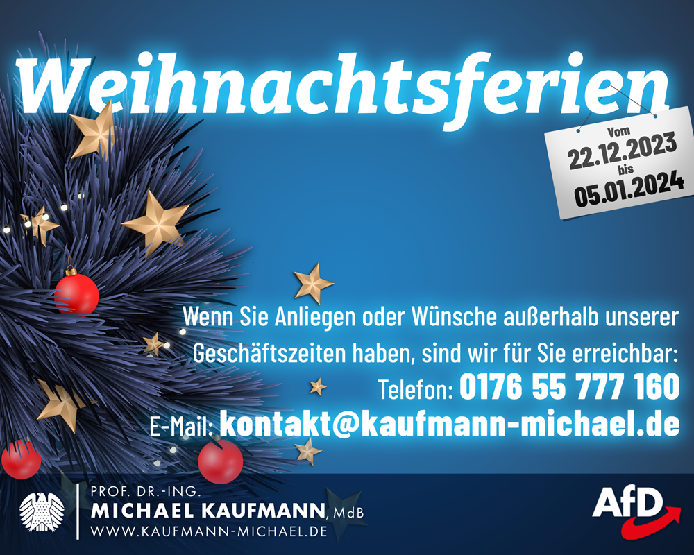 Bitte beachten Sie die geänderten Öffnungszeiten während unserer Weihnachtsferien. Ich wünsche Ihnen ein schönes Weihnachtsfest!